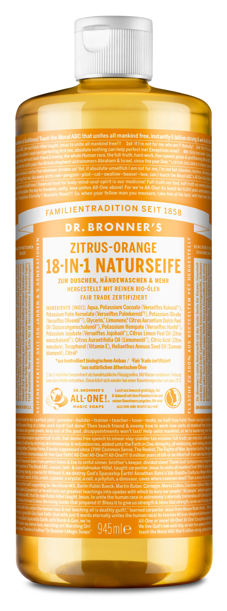 Dr. Bronner's 18 in 1 Zitrus-Orange 945 ml (EK/Stück: 15.12, UVP: 29.99)